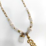 Colar em aço inoxidável com pedras brancas e pendente cobra.